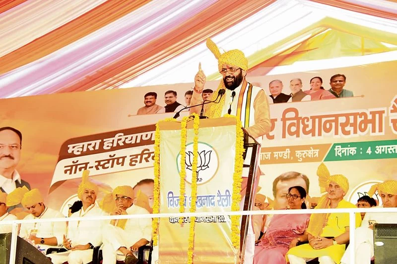 ਕਿਸਾਨਾਂ ਨੂੰ ਲੁਭਾਉਣ ਲਈ ਮੁੱਖ ਮੰਤਰੀ ਨਾਇਬ ਸਿੰਘ ਸੈਣੀ ਨੇ ਅੱਜ ਕਿਹਾ ਕਿ ਸੂਬਾ ਸਰਕਾਰ ਘੱਟੋ-ਘੱਟ ਸਮਰਥਨ ਮੁੱਲ (ਐੱਮ.ਐੱਸ.ਪੀ.) 'ਤੇ ਸਾਰੀਆਂ ਫਸਲਾਂ ਦੀ ਖਰੀਦ ਕਰੇਗੀ। ਉਨ੍ਹਾਂ ਨੇ ਸਿੰਚਾਈ ਲਈ ਨਹਿਰੀ ਪਾਣੀ ਦੀ ਸਪਲਾਈ 'ਤੇ ਕਿਸਾਨਾਂ ਦੇ ਬਕਾਇਆ ਖਰਚੇ ਵੀ ਮੁਆਫ ਕਰਨ ਦਾ ਐਲਾਨ ਕੀਤਾ। ਮੁੱਖ ਮੰਤਰੀ ਨੇ ਇਹ ਐਲਾਨ ਥਾਨੇਸਰ ਵਿਖੇ ‘ਵਿਜੇ ਸ਼ੰਖਨਾਦ’ ਰੈਲੀ ਵਿੱਚ ਵਿਧਾਨ ਸਭਾ ਚੋਣਾਂ ਲਈ ਭਾਜਪਾ ਦੀ ਚੋਣ ਦਾ ਬਿਗਲ ਵਜਾਉਂਦੇ ਹੋਏ ਕੀਤਾ।